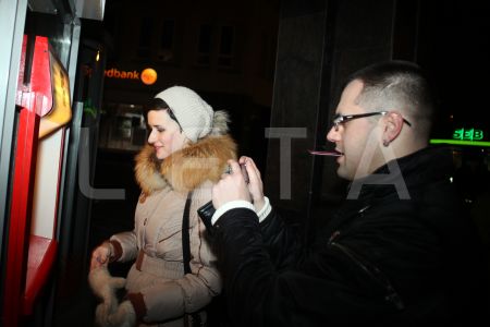 Jaunietes ar izņemtajām eiro banknotēm no "Swedbank" bankomāta pēc ...