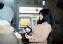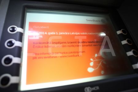 Uzraksts "Swedbank" bankomātā pēc Latvijas pievienošanās eirozonai. ...