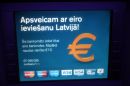 Uzraksts "SEB" bankas bankomātā pēc Latvijas pievienošanās eirozonai. ...