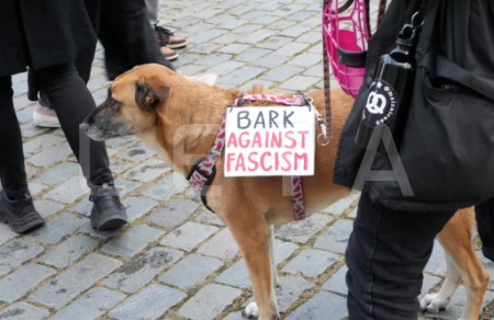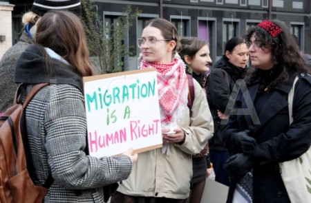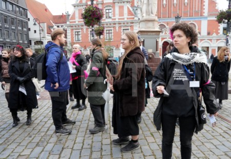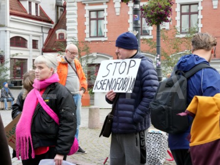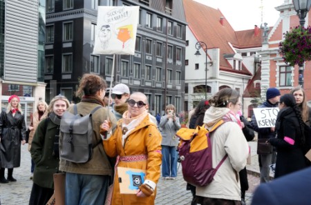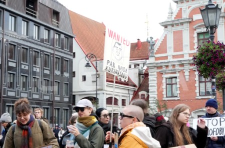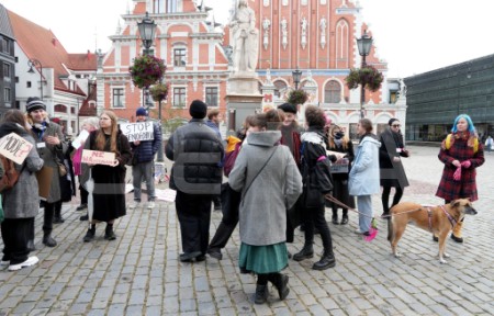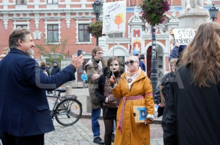 Rātslaukumā pie Rīgas domes notiek protests "Migrācija ir ...