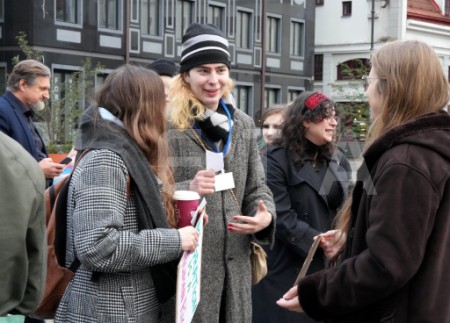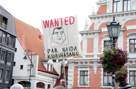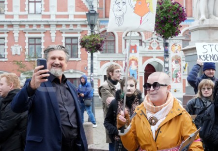 Rīgas domes deputāts Ēriks Stendzenieks (no kreisās) protesta ...