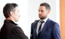 Zvērināts advokāts Andris Tauriņš (no kreisās) un krimināllietā ...