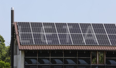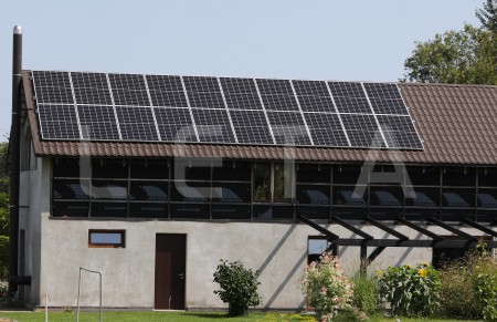 Saules paneļi uz ēkas jumta Tukuma novadā.