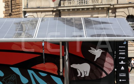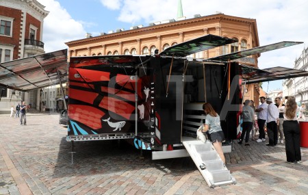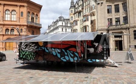 Doma laukumā apskatāms dzīvojamais furgons "Solar Butterfly", ko ...