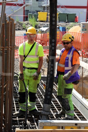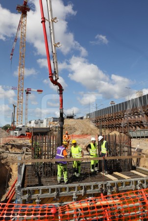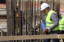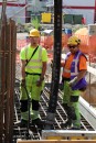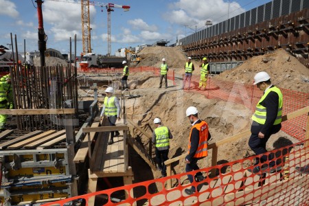 Strādnieki "Rail Baltica" būvlaukumā pie Rīgas Centrālās dzelzceļa ...