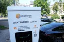 Elektroauto uzlādes laukums ar 11 publiskām uzlādes pieslēgvietām ...