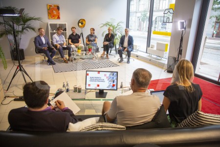 Pasākuma moderators Haralds Burkovskis (no kreisās), "SSE Riga" ...