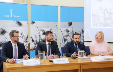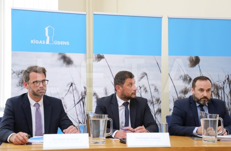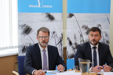 SIA "Rīgas ūdens"valdes priekšsēdētājs Krišjānis Krūmiņš (no kreisās) ...