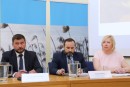 SIA "Rīgas ūdens" valdes loceklis Normunds Zvaunis (no kreisās), ...