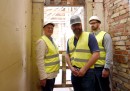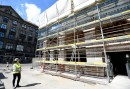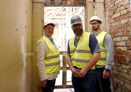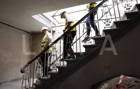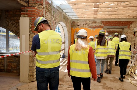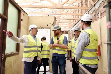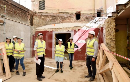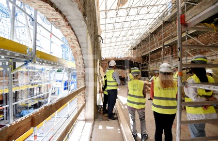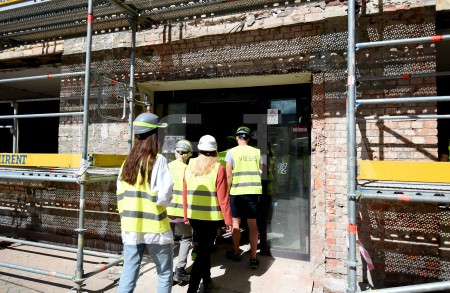 Latvijas Leļļu teātra darbinieki apskata teātra būvdarbu norisi, kur ...