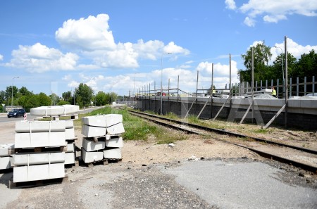 Sarkandaugavas satiksmes pārvada būvniecības darbi.