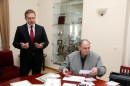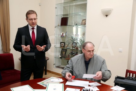 Satversmes tiesas priekšsēdētājs Aldis Laviņš (no kreisās) piedalās ...