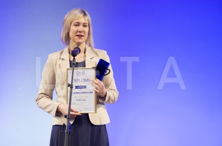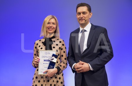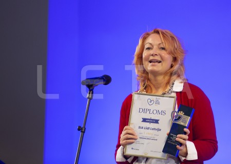 SIA "Lidl Latvija" pārstāve ar saņemto balvu par iegūto pirmo vietu ...