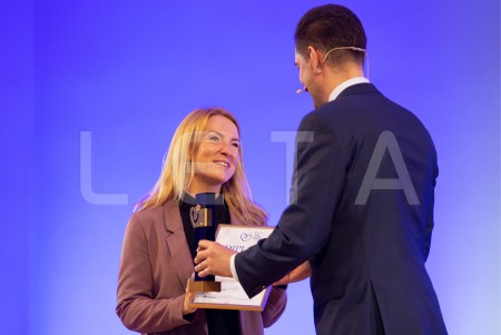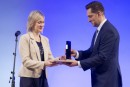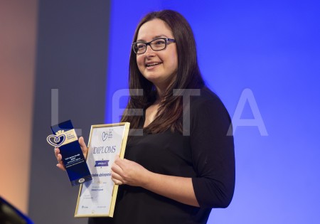 SIA "Lauma Fabrics" pārstāve ar saņemto balvu par iegūto pirmo vietu ...