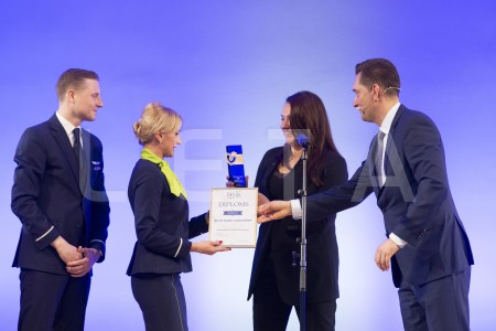 "airBaltic" stjuarti ar saņemto balvu par pirmo vietu kategorijā "Top ...