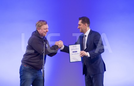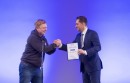 SIA "TestDevLab" līdzdibinātājs Kristaps Skutelis ar saņemto balvu ...