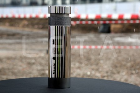 Kapsula ar vēstījumu nākamajām paaudzēm, kas tiks iemūrēta biroju ...