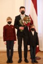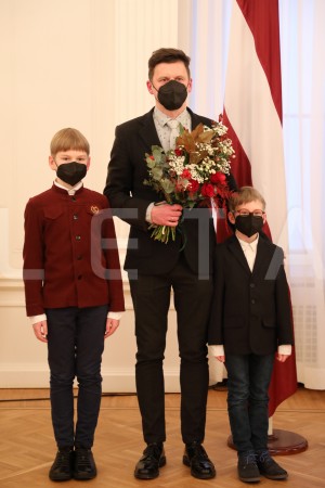 Monētas "Satversmei 100" autors Aigars Ozoliņš ar dēliem piedalās ...