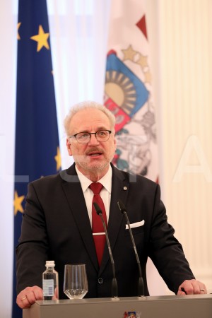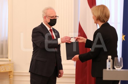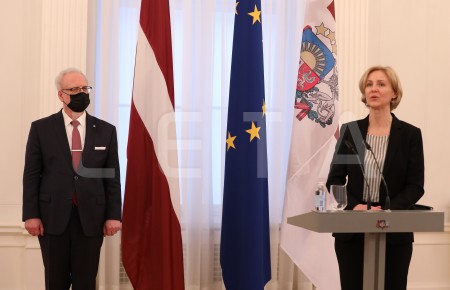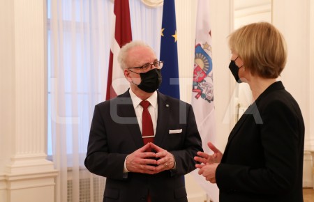 Valsts prezidents Egils Levits un Latvijas bankas padomes locekle ...