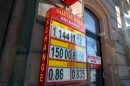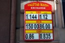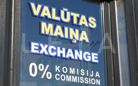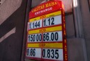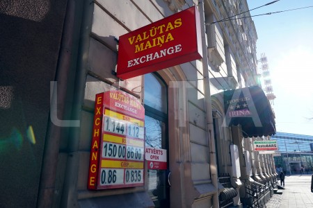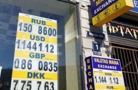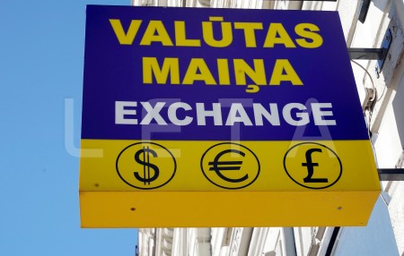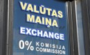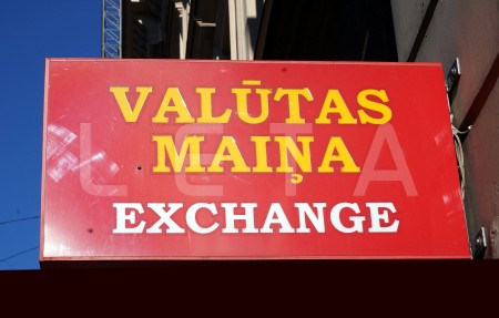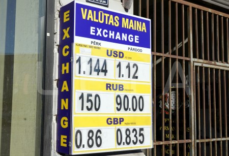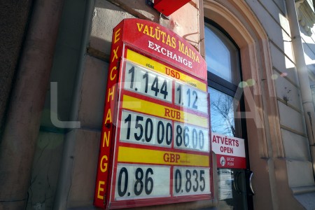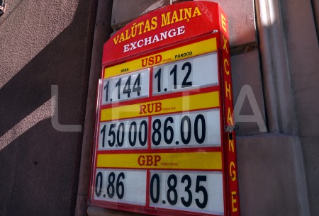 Valūtas kursa tablo pie maiņas punkta, kur redzams Krievijas rubļa ...