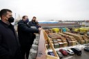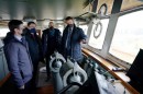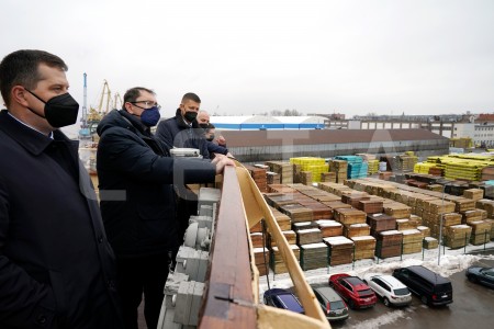 Satiksmes ministrs Tālis Linkaits (2.no kreisās) Rīgas ostas ...