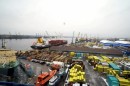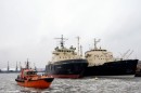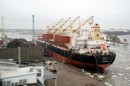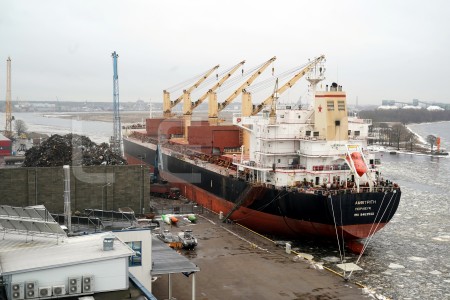 Loču kuteris "Dore" un kuģi Rīgas ostā.
