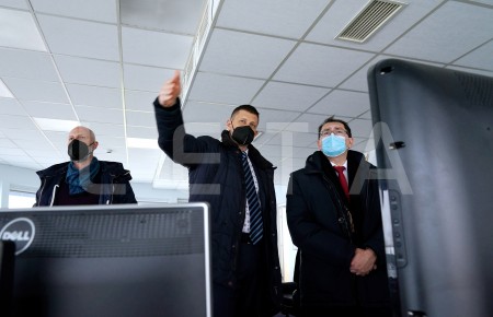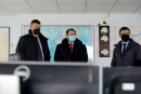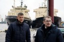 Satiksmes ministrs Tālis Linkaits (no kreisās) un Rīgas brīvostas ...