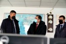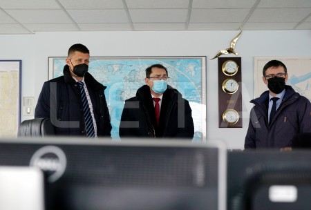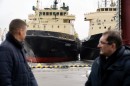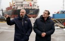 Satiksmes ministrs Tālis Linkaits (no labās) un Rīgas brīvostas ...