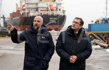 Rīgas brīvostas pārvaldnieks Ansis Zeltiņš (no kreisās), satiksmes ...