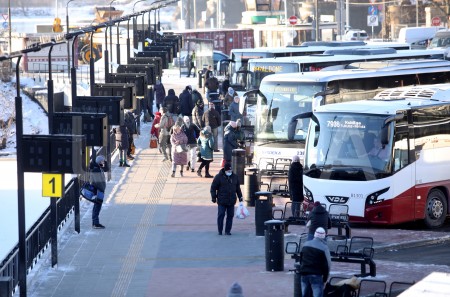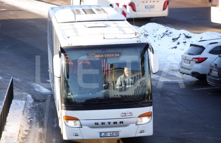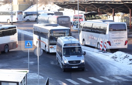 Autobuss Rīgas Starptautiskās autoostas teritorijā.