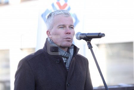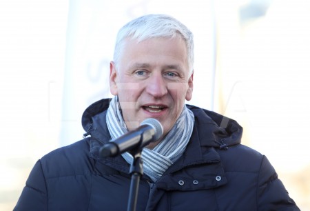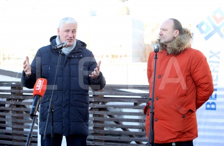 Daugavpils domes priekšsēdētājs Andrejs Elksniņš (no kreisās) un ...