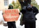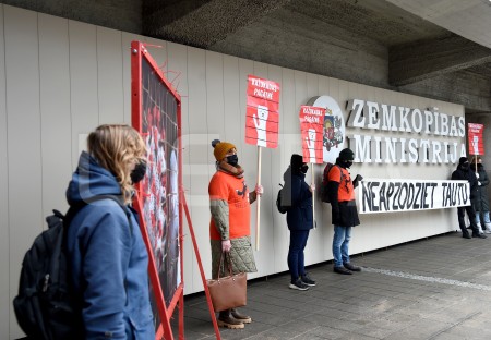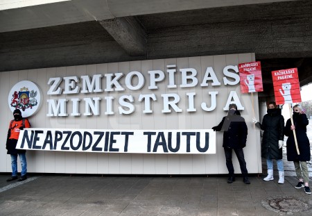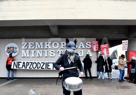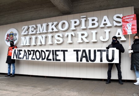 Pie Zemkopības ministrijas notiek pikets, aicinot zemkopības ministru ...