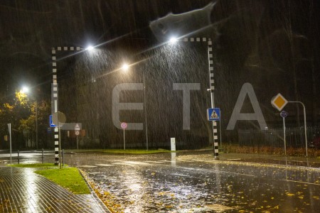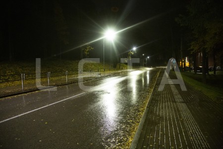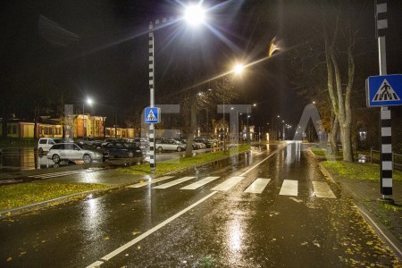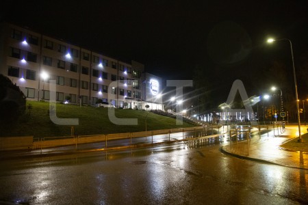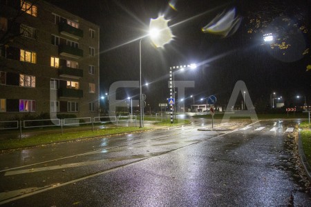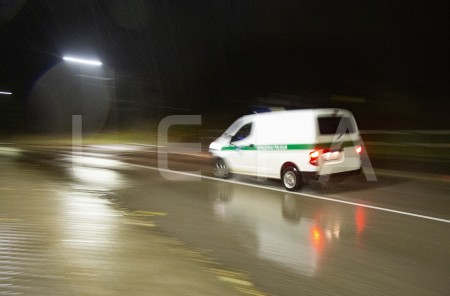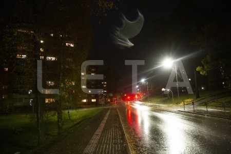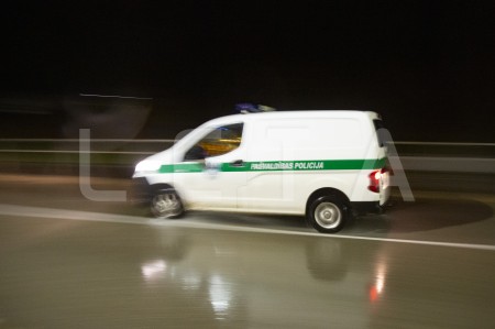 Pašvaldības policija patrulē Ogrē komandantstundas laikā, kad valstī ...