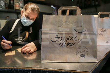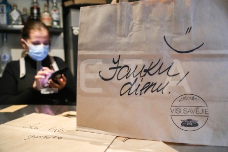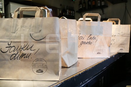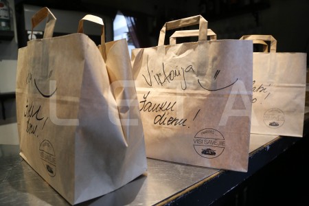 Restorānā "Visi savējie" sagatavoti maisiņi ar ēdienu izsniegšanai, ...