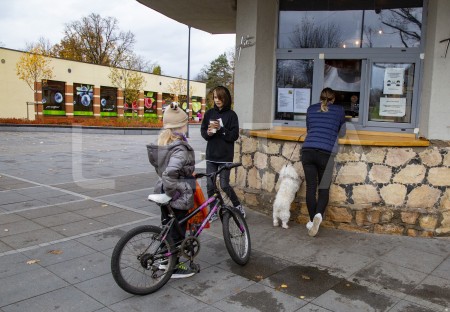 Cilvēki pie kafejnīcas Ogrē Covid-19 pandēmijas laikā, kad valstī ...