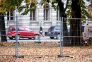 Nožogojums Esplanādē, kur tiek sākti gājēju celiņu bruģa atjaunošanas ...