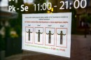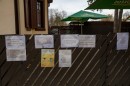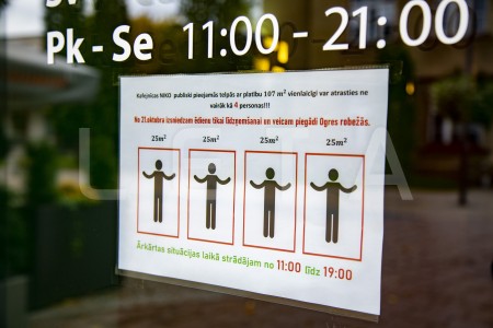 Informatīvie materiāli pie kafejnīcas Ogrē Covid-19 pandēmijas laikā, ...