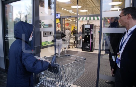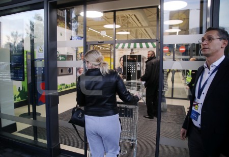 "Lidl" veikala vadītājs Ivans Lupaško sagaida pirmos pircējus pie ...