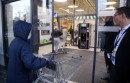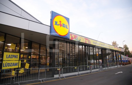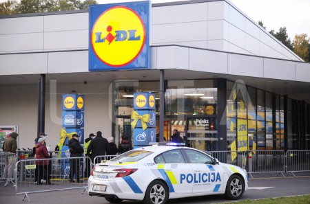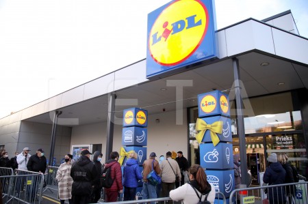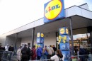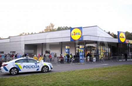 Cilvēki dodas iepirkties "Lidl" veikalā pēc oficiālās atklāšanas ...