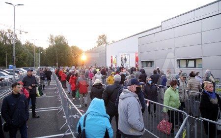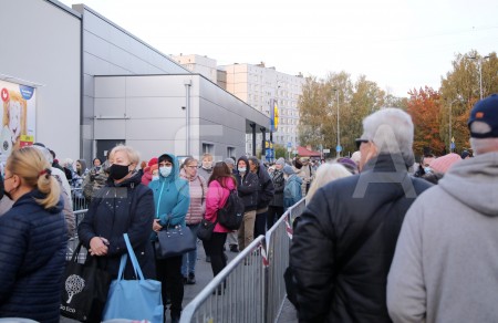 Cilvēku rinda pie "Lidl" veikala pēc oficiālās atklāšanas Anniņmuižas ...