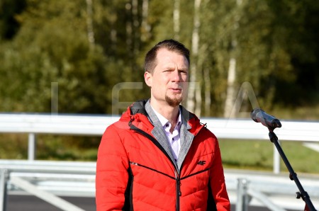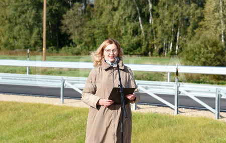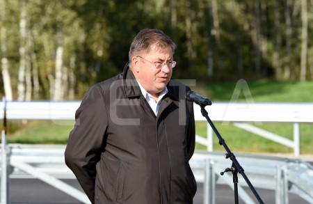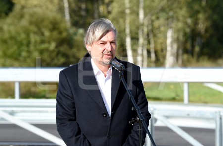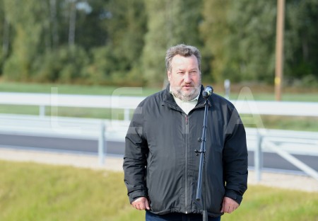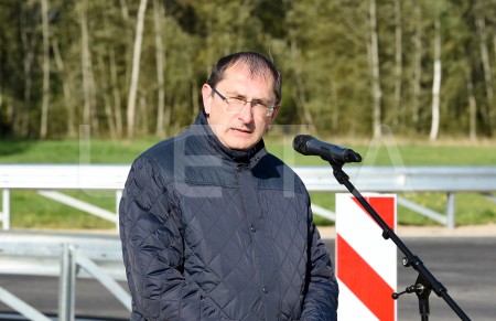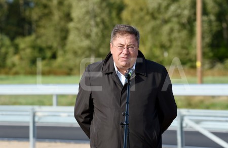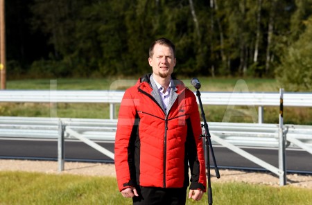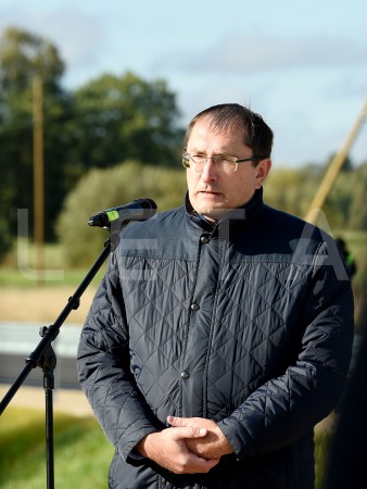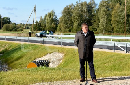 Satiksmes ministrs Tālis Linkaits saka uzrunu pārbūvētā reģionālā ...