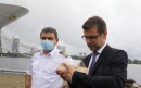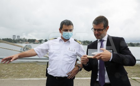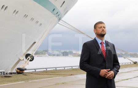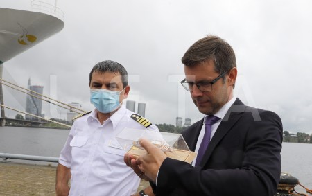 Rīgas brīvostas pārvaldnieks Ansis Zeltiņš (no kreisās), kuģa ...