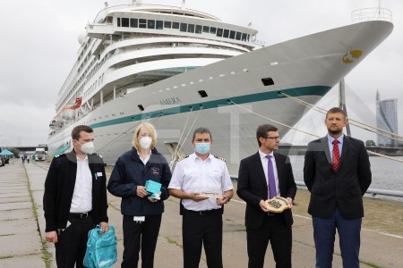 Pēc pusotra gada pārtraukuma Rīgas ostā ar 556 pasažieriem uz klāja ...
