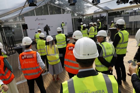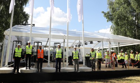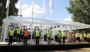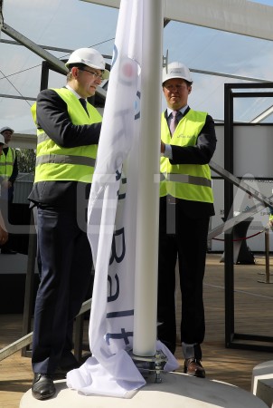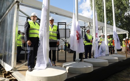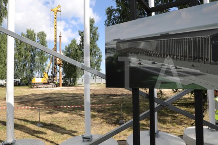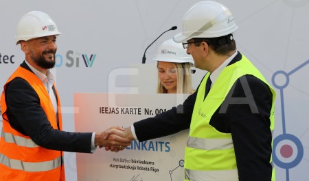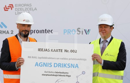 Karogu uzvilkšana mastos dzelzceļa projekta "Rail Baltica" stacijas ...