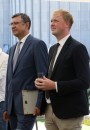 Satiksmes ministrs Tālis Linkaits (no kreisās) un Mārupes novada ...