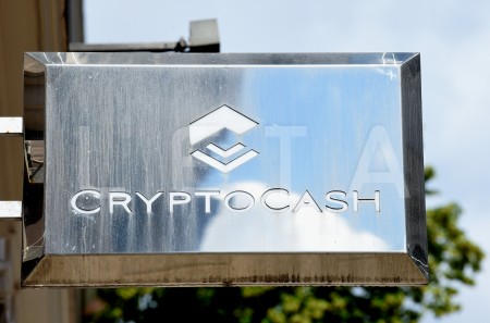 Kriptovalūtas vēstniecības "CryptoCash" izkārtne Rīgā.