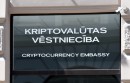 Kriptovalūtas vēstniecības "CryptoCash" izkārtne Rīgā.