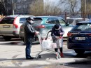 Cilvēki ar iepirkumu ratiem pie Krievijas zemo cenu ...