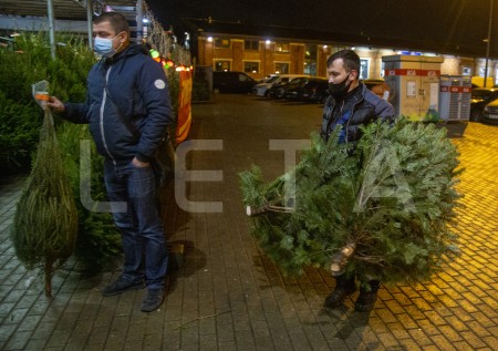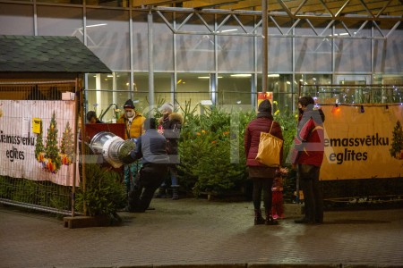 Ziemassvētku eglīšu tirdzniecība pie veikala "cenuklubs.lv" pirms ...