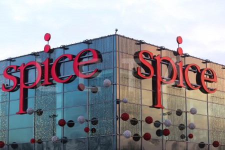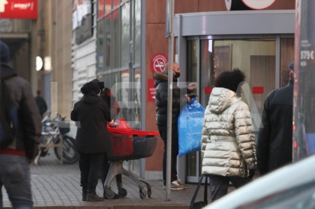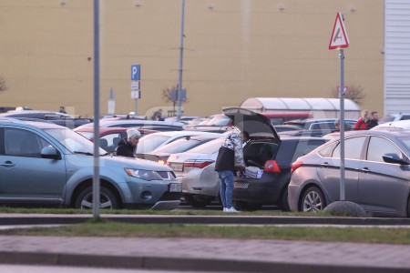 Cilvēki pie tirdzniecības centra "Spice" pirms jauno tirdzniecības ...